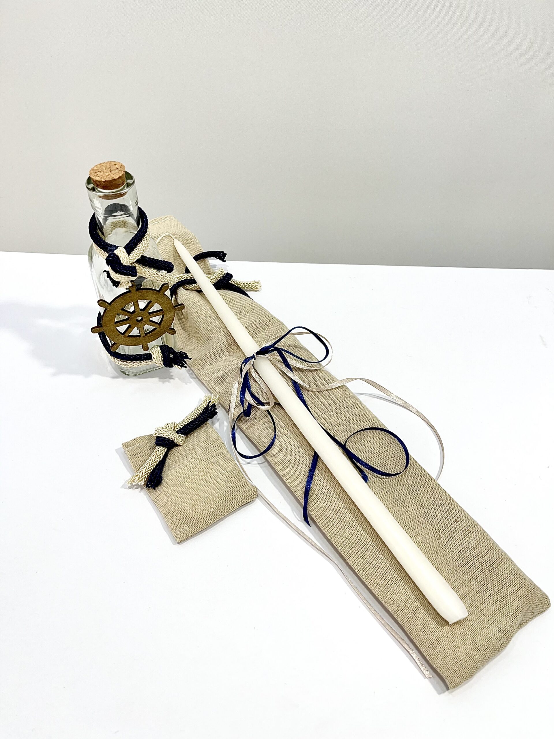 Χειροποίητο λαδοσέτ για αγόρι με θέμα καράβι, καραβόσχοινο και διακοσμητικό τιμόνι.