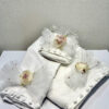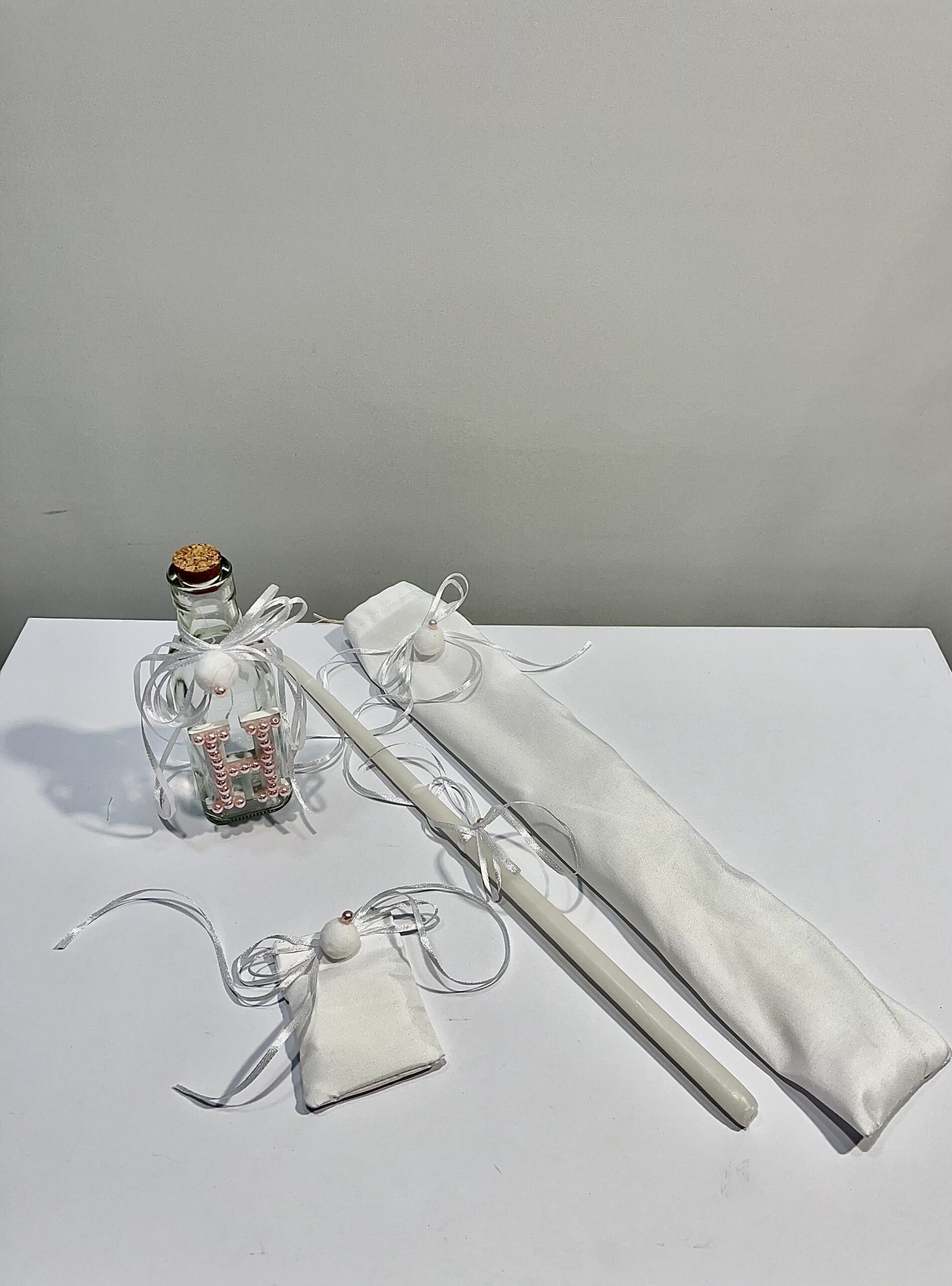 Χειροποίητο λαδοσέτ για κορίτσι, με μονόγραμμα της επιλογής σας, πον πον και πέρλες.