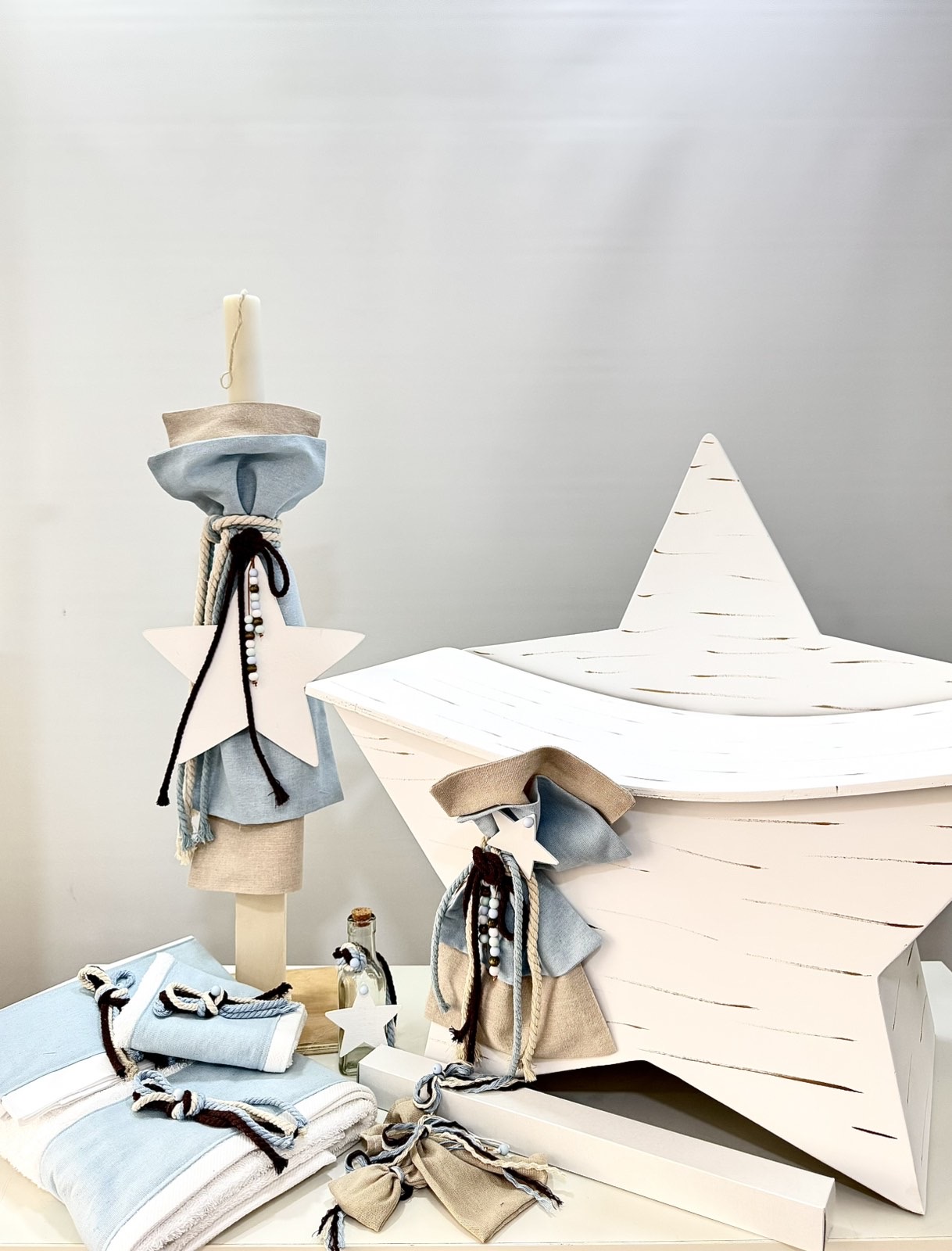 Χειροποίητο πακέτο βάπτισης για αγόρι με θέμα αστέρι .