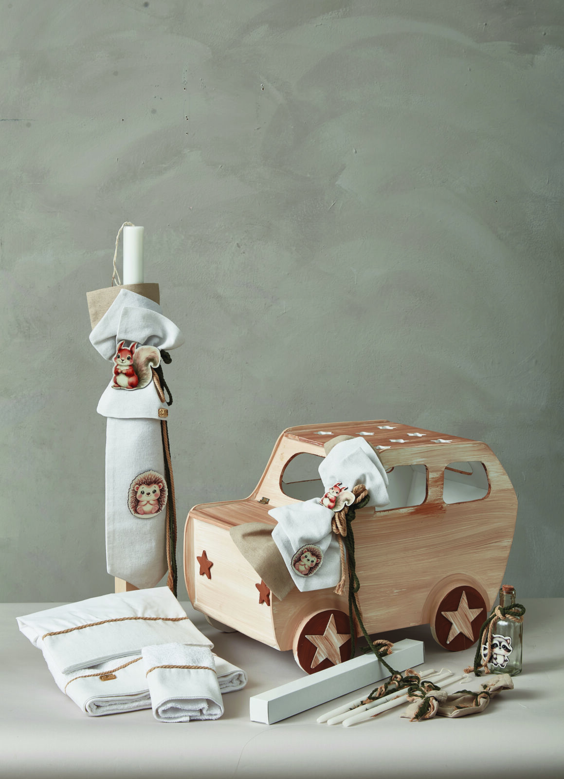 Το πακέτο περιλαμβάνει το έπιπλο, τη λαμπάδα, τα λαδόπανα, το λαδοσέτ, τα βαπτίστικα ρούχα και τα παπούτσια.