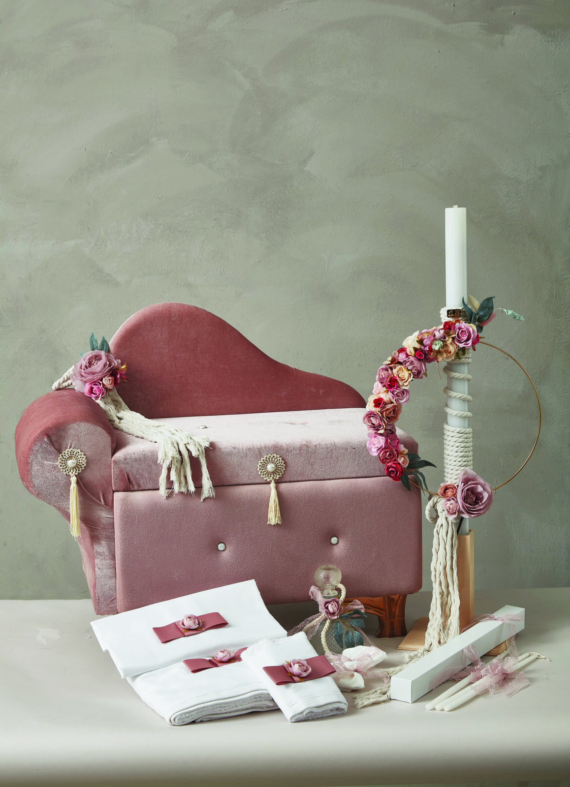 Το πακέτο περιλαμβάνει το ανάκλινδρο, τη λαμπάδα, τα λαδόπανα, το λαδοσέτ, τα βαπτίστικα ρούχα και τα παπούτσια.